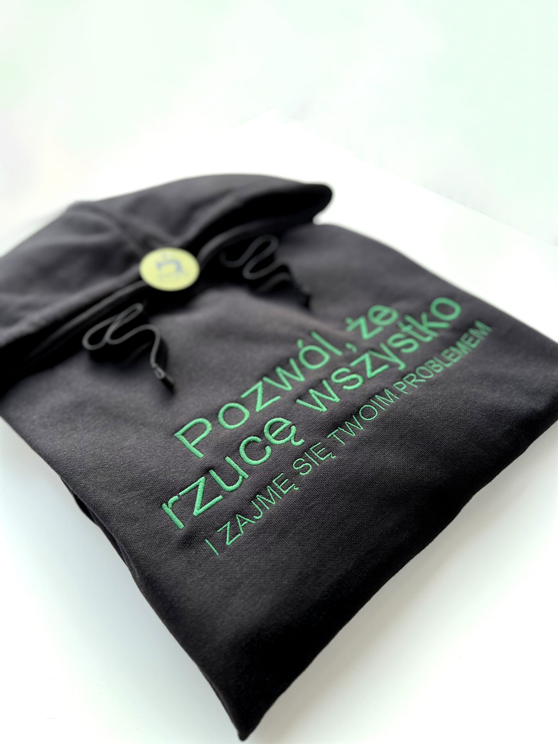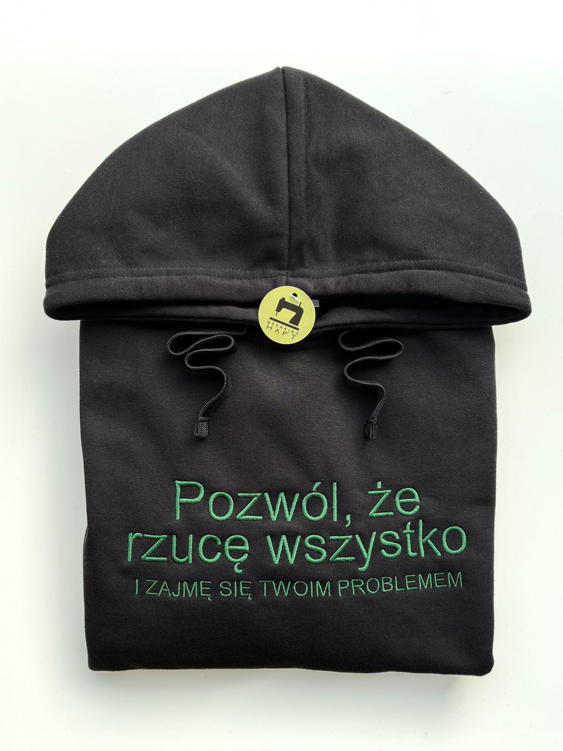 Bluza z kapturem i haftowanym napisem „Pozwól, że rzucę wszystko i zajmę się Twoim problemem” to idealna propozycja dla osób, które cenią ironiczny humor i sarkastyczne teksty. Napis w subtelnej formie haftu przyciąga uwagę i doskonale oddaje dystans do codziennych sytuacji.