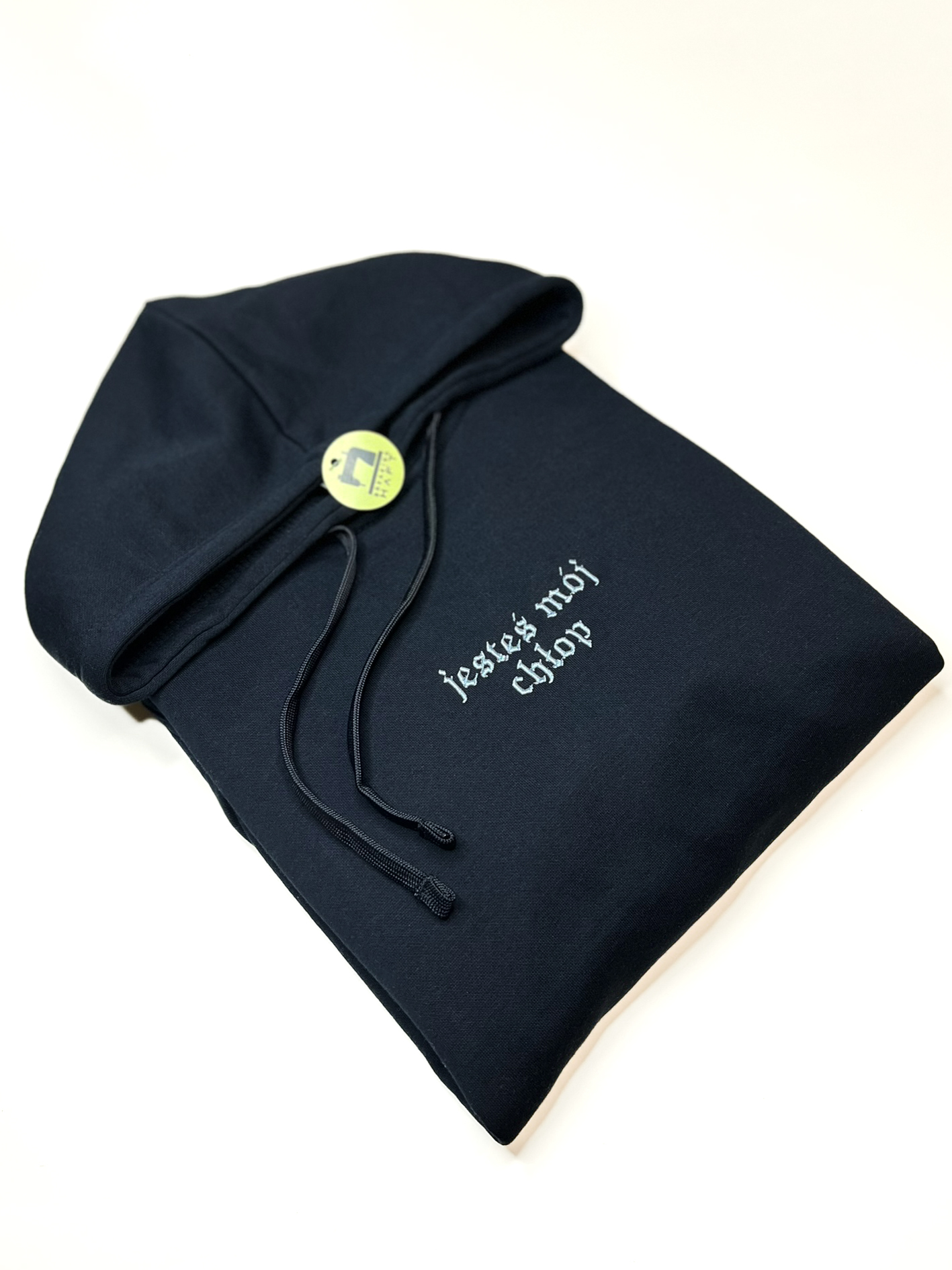 Napis wykonany jest techniką haftu komputerowego, co zapewnia wysoką trwałość, dokładność oraz estetyczne wykończenie. Haft jest odporny na pranie i codzienne użytkowanie, dzięki czemu zachowuje swój wygląd przez długi czas.