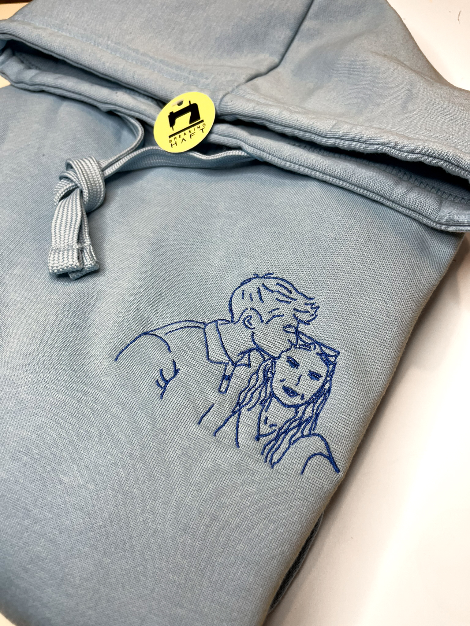 Każdy haft przygotowywany jest indywidualnie na bazie zdjęcia, co pozwala uzyskać możliwie najlepsze odwzorowanie postaci przy zachowaniu prostoty stylu outline.
